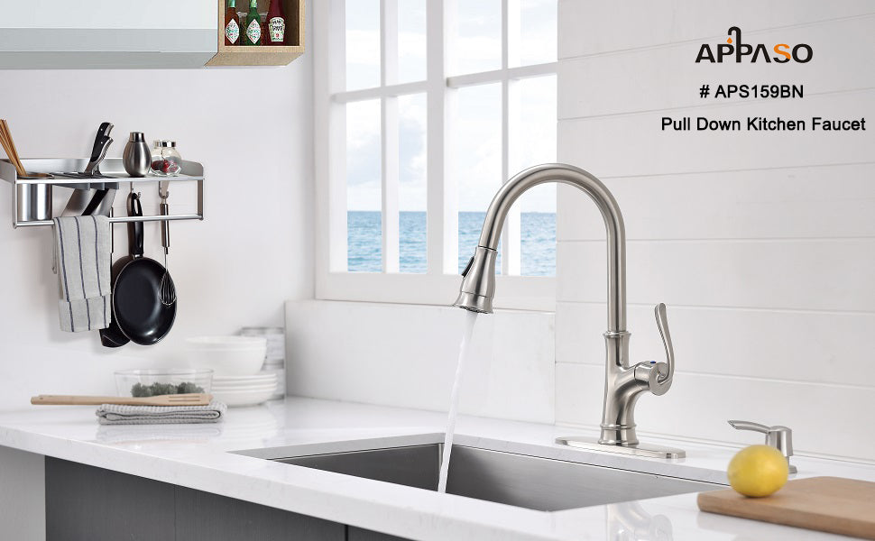 APPASO 159BN Kitchen Faucet Brushed Nickel with Pull Down Magnetic Docking Sprayer